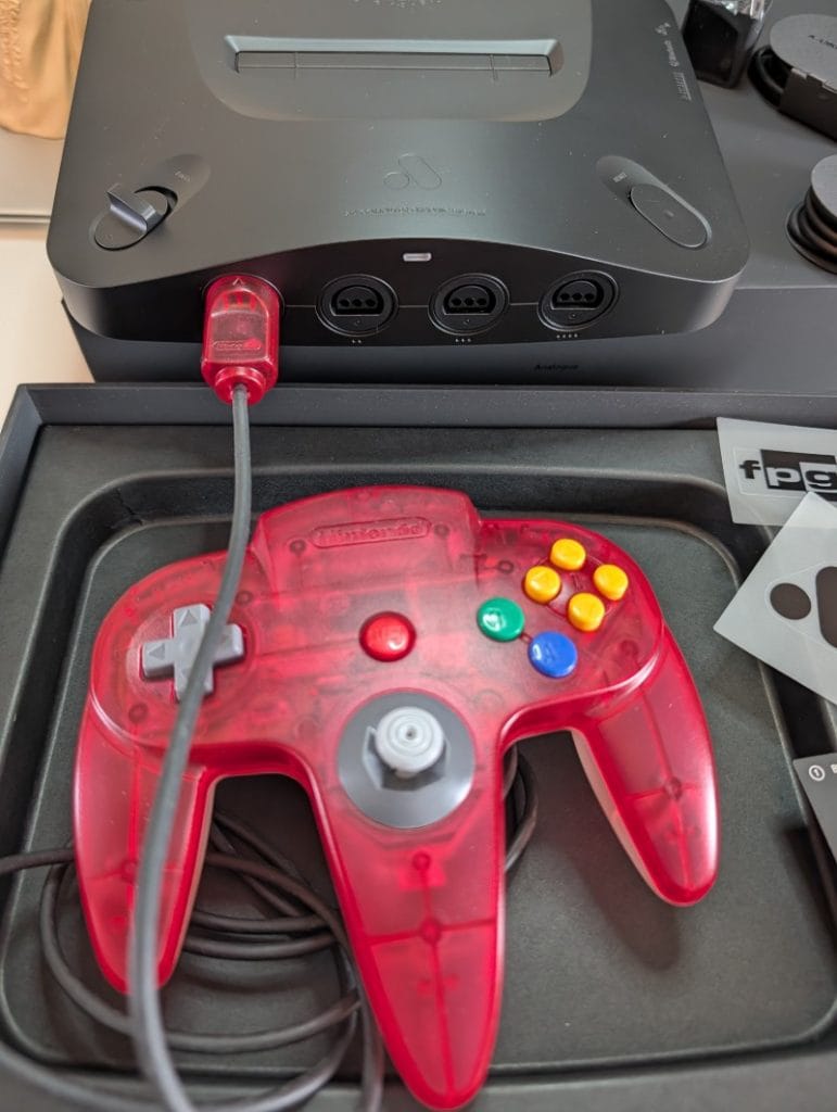 Îmi aduc aminte că și carcasa N64 original de culoare închisă avea un finisaj mat, dar nu atât de pronunțat, astfel că amprentele se vedeau mult mai repede.