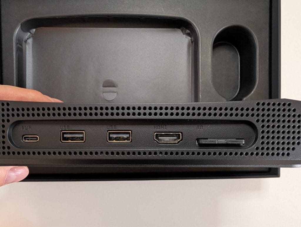 - Ambalajul premium al consolei, de culoare negru mat satinat, sugerează o atenție deosebită la detalii și o experiență de unboxing asemănătoare cu cea a unui laptop de top.